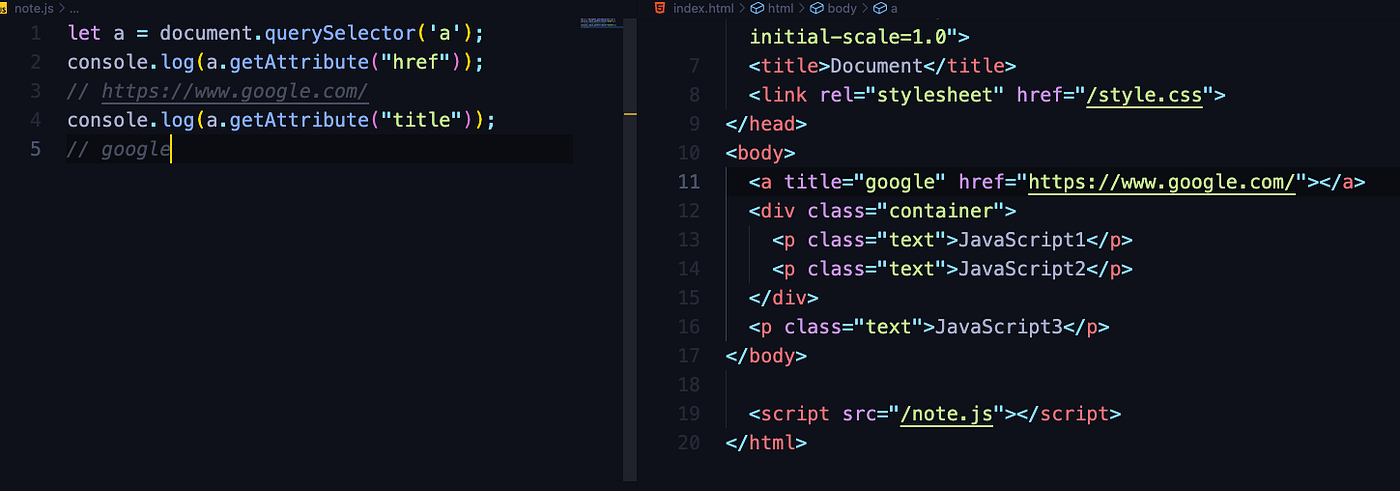 💡 我們都知道一個 object 有 屬性 跟 方法,但在英文卻有兩種說法:***屬性:***properties:是指存在在DOM objects中的屬性,像是。attributes:是指我們寫在HTML的屬性,像是。